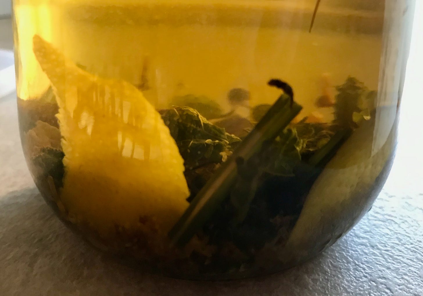 The vodka I was using had a bit of a kick and taste to it. I think it may have been someones home recipe if I am not mistaken. Not ideal for gin, but I still wanted to try and see how the addition of my blend of herbs and spices would change the flavour and aroma.