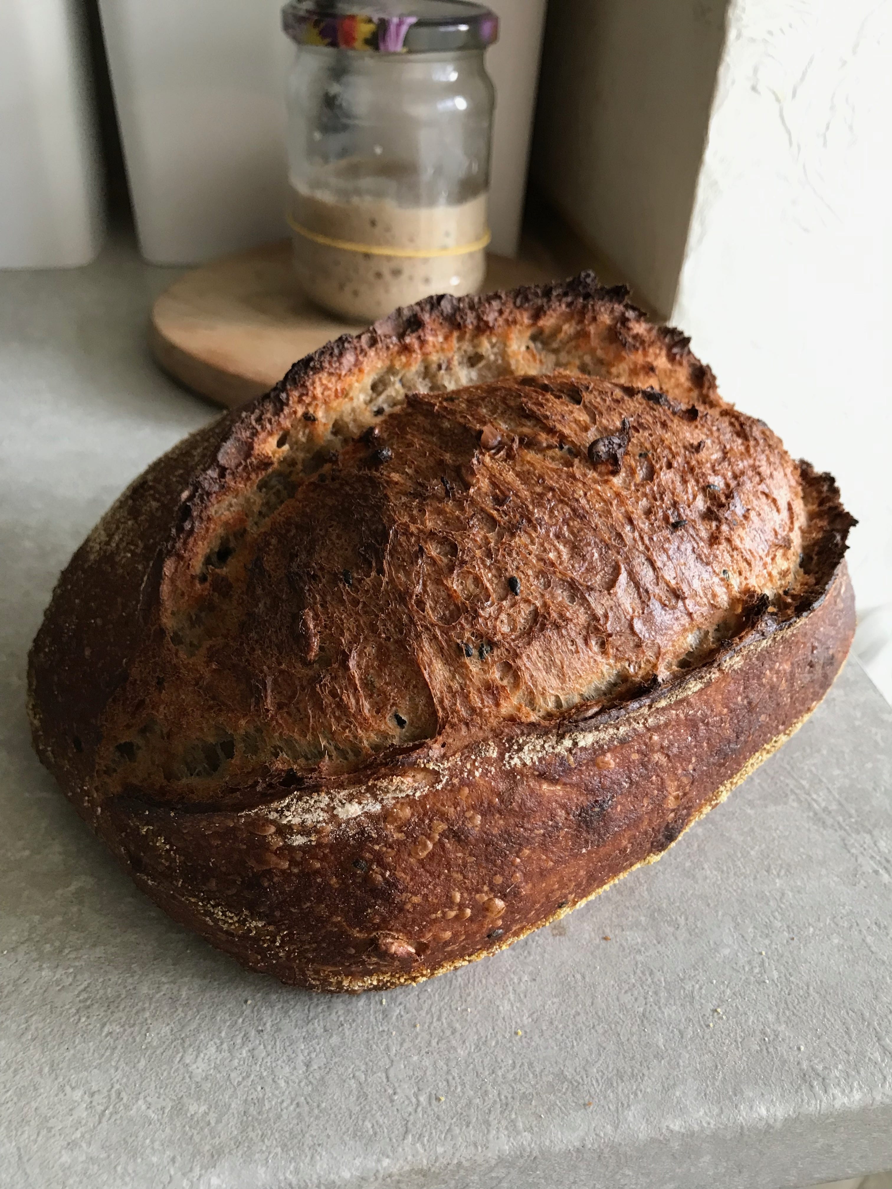 The sourdough process is essentially fermented food. It is filled with healthy microbes and bacterias. This contributes to better overall health. Especially when whole grain and stone-milled flours are used. Have to admit I feel so much better in general when I am eating my sourdough bread. I eat some with almost every meal. Like we used to. The aroma and taste are remarkable. I am sure most of you have bread in your home that won’t go stale for a month. Just ask yourself how. My bread is essentially three ingredients - flour, water, salt (my leaven only consists of flour and water). Care to read the label on yours?